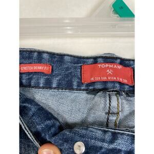 Topman Mens Stretch Skinny Fit Oil Splatter Faded Blue Jeans Size 32
