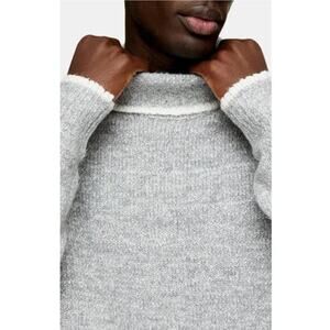 Topman Men's Tipped Roll Neck Sweater Large Heather Gray NEW Turtleneck Modern