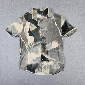 Topman Shirt Mens Size Medium Short Sleeve Button Down Concrete Print Gray