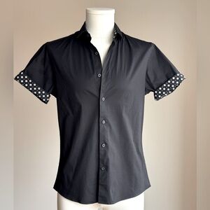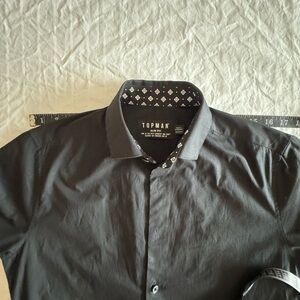 Topman button down slim fit short sleeves men’s shirt in black size Small. Excellent pre owned condition. No holes or stains.