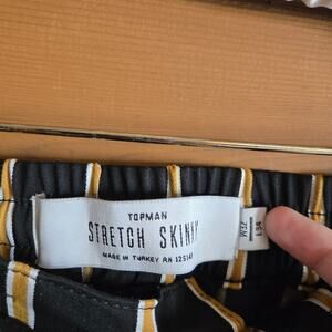 Topman Stretch Skinny Stripe Slim Pants W32 L34 Black Gold Pinstripe Tie Waist