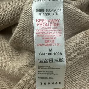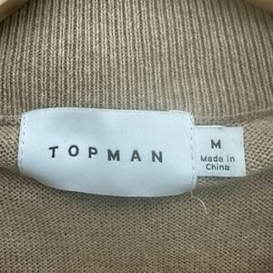 Topman Sweater Mens M Beige Quarter Zip Mock Neck Pullover Cotton Preppy Casual