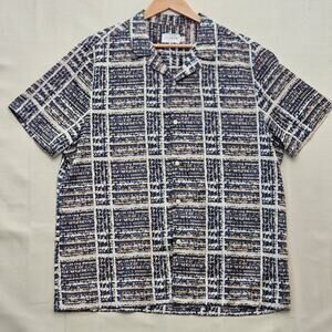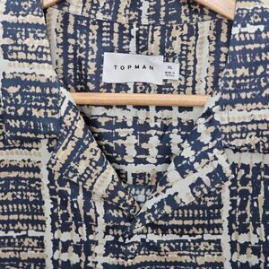 Topman XL Short Sleeve Button-Up Shirt Blue/White/Tan Square Checkered Pattern