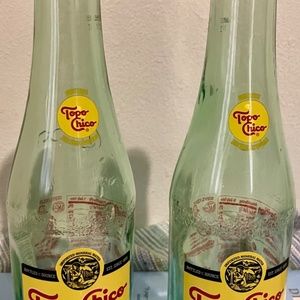 Topo Chico Bottles Set of 2, green glass , mini bottles, empty