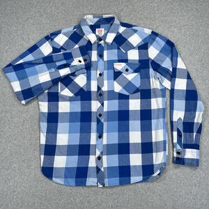 Topo Designs Mountain Shirt Mens XL Blue Plaid Button Up Flannel Hiking Outdoor