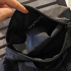 the inside is also all black and has a laptop sleeve. pack overall is flexible with a lightly padded back and a 20L size.