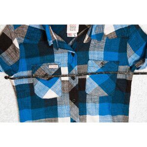 Topo Designs Womens Plaid Flannel Work Shirt Blue & White Size Small