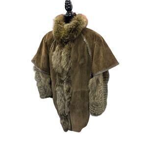 Toppolino VTG Suede Fur Trim Coat Olive Green sz M Relaxed Fit Winter Jacket