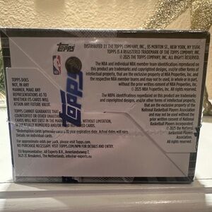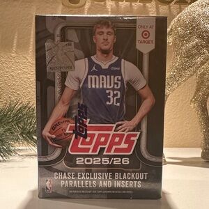 Topps 2025/2026 basketball cards target exclusive! This Brand new box was only available on Black Friday with an exclusive to target. Each sealed box contains 132 total cards - 11 packs per box and there are 12 cards per pack. Perfect as a birthday party favor or team event.