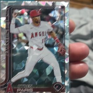 Topps trading card featuring an Angels player. Vibrant red and white colors. Perfect for collectors.