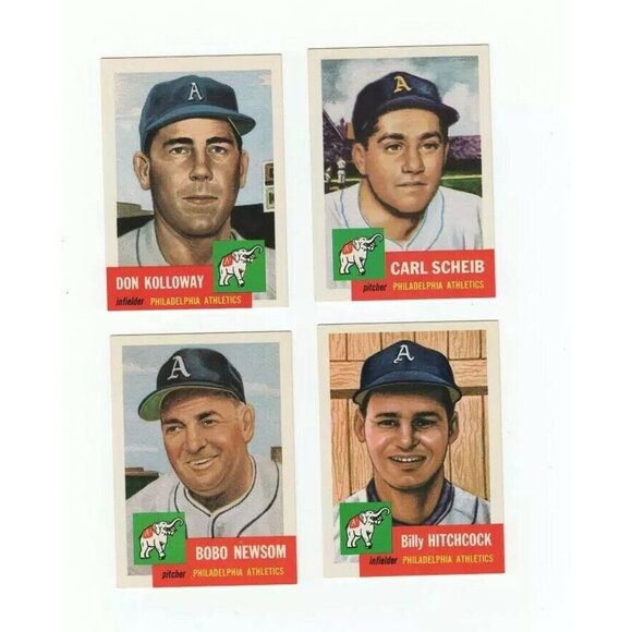 #PhiladelphiaAthletics #ToppsArchives #BoBoNewsom #BillyHitchcock #DonKoloway #CarlScheib #VintageBaseballCards #AthleticsCollectibles