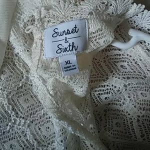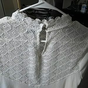 Tan color blouse w lace on top and button on the back