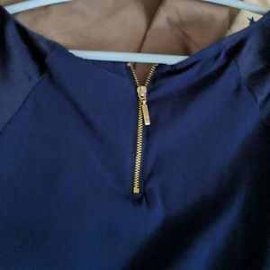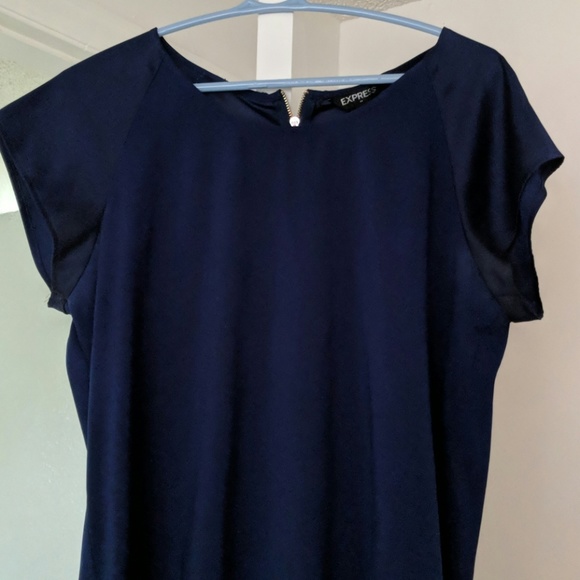 Blue short sleeve express shirt ! Great shape sleeves are a darker blue .