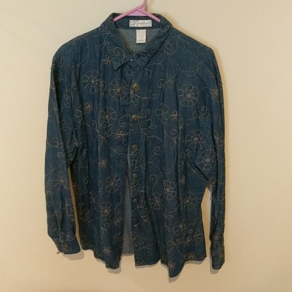 Denim long sleeve shirt with decorative pattern