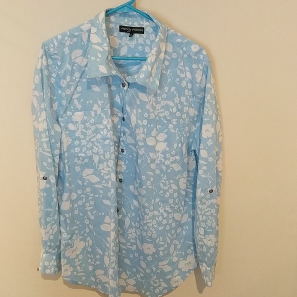 Long sleeve button up shirt. Blue and white multi