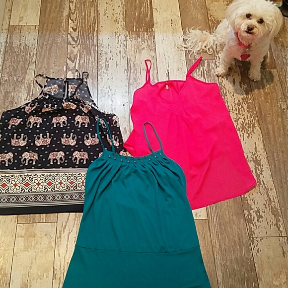 3 incredibly cute tops perfect for the summer all are loose fit. Pink top is size M, Elephant top is M, Blue is L but fits like a M... excellent condition all New except no tags.
