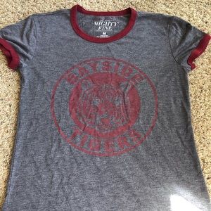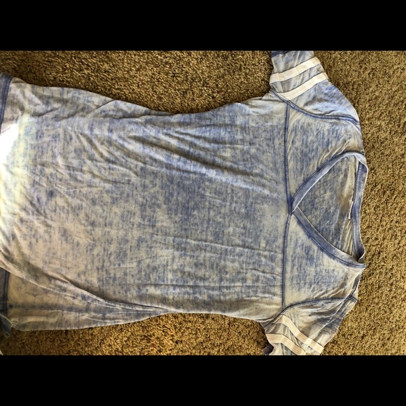 Blue shirt- size M $5 Do Your Thing- size M $10 Navy shirt (active wear)- size S $5 Grey long sleeve- size M $5 Floral tank- size S $5 Bayside shirt- size M $7 White top (two pics)- size M $5