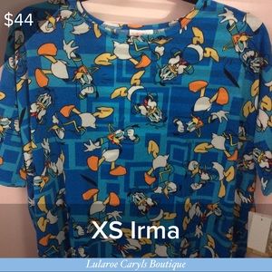 Disney/LlR Irma...over sized and long to wear with leggings. Size down 1-2 sizes from your normal size.