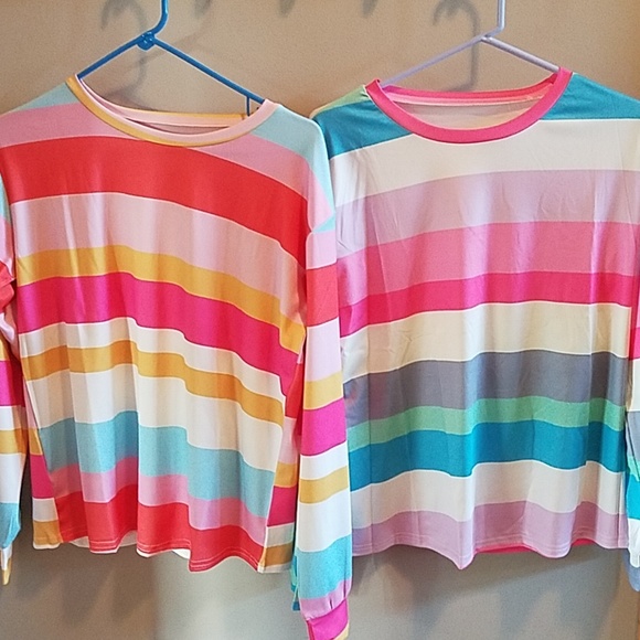 Polyester striped top, $17 each