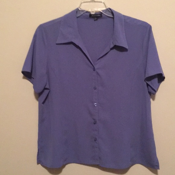 Grayish Blue short sleeve top with buttons down the front.