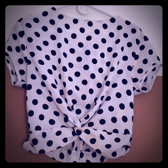 Polka dot prints in Excellent condition. Machine wash, 100% Polyester. Perfect for casual or formal attire. Have bow to tie at the nape.