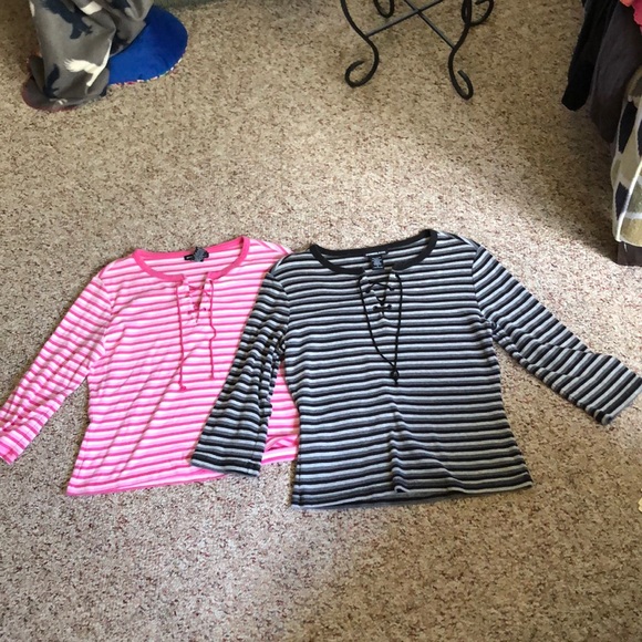 Pink & White Striped 3/4 Length Sleeve Top