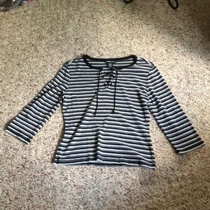 Black & Grey Striped 3/4 Length Sleeve Top
