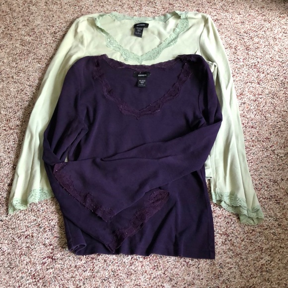 V-Neck Lace Neckline, Bell Lace Lined Sleeve Long Sleeve Tops