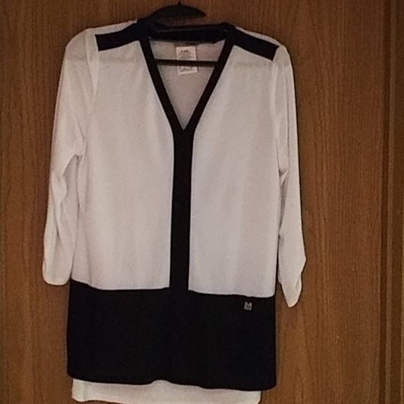 Black and White blouse 95% Polyester 5% Spandex. 3/4 sleeve