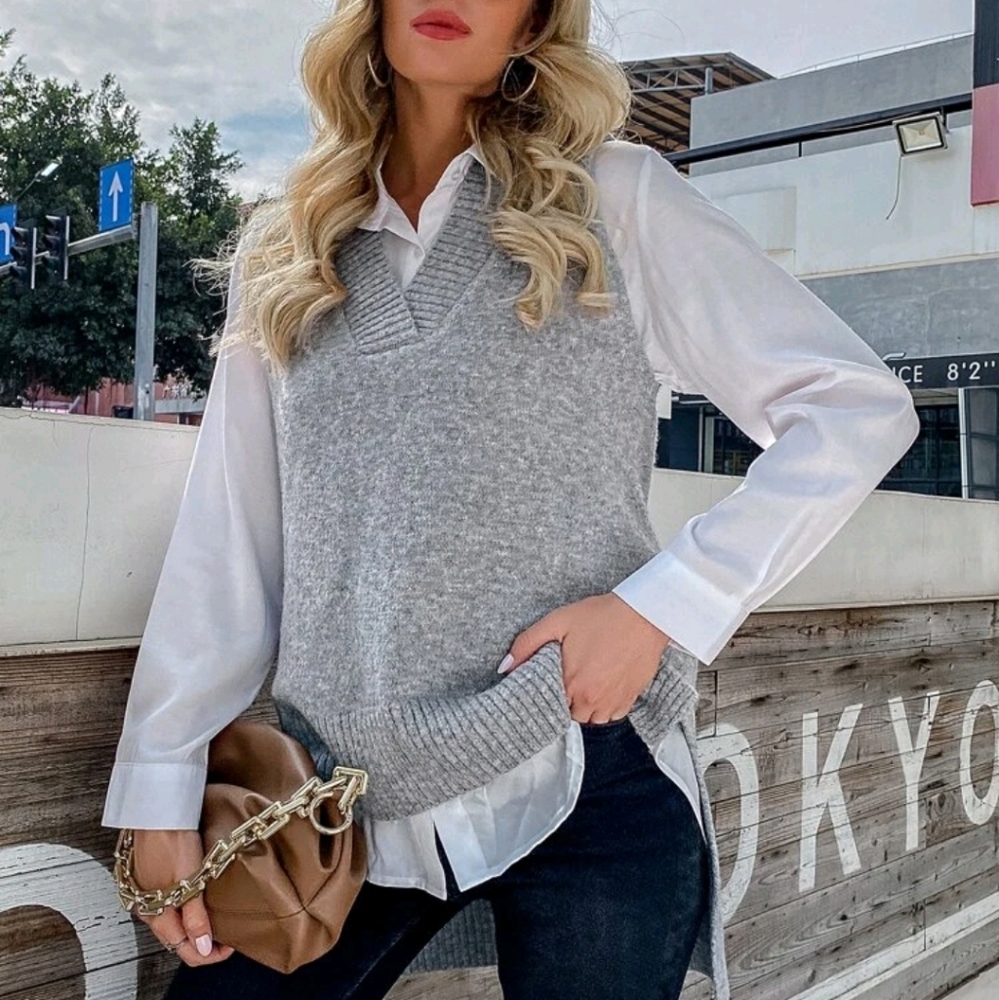 Color: Gray Print Type: Plain Neckline: V-neck or V-neck Length: Long Details: asymmetric, Ribbed Sleeve Length: sleeveless Season: Spring / Autumn Composition: 65% Cotton, 35% Polyester Material: Woven Cotton : Elastic Light Transparent: No