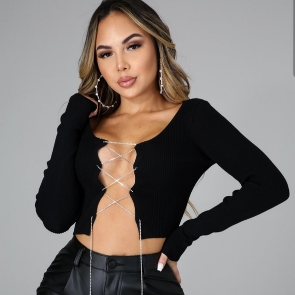 Sweater top with sexy diamond lace up