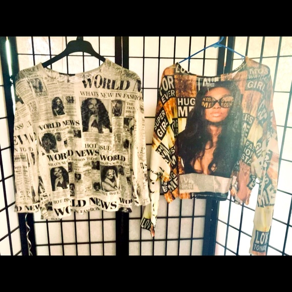 Really cute tops black and white newspapers print size L 10$
