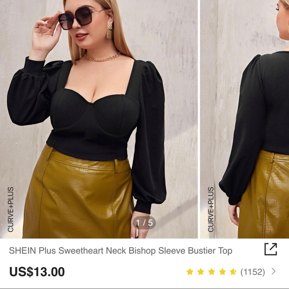 Shein plus sweetheart neck bishop sleeve bustier top Black 0XL NWOT