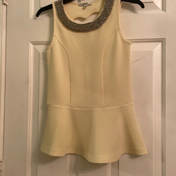 Sleeveless top stretchy fabric with beadwork neckline