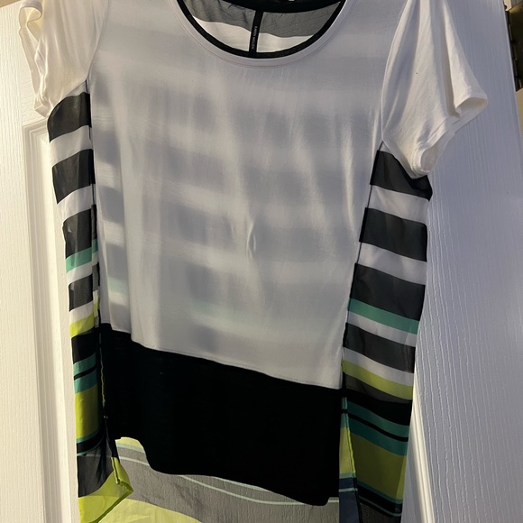 It’s beautiful high and low tops from Karen Milan . Size S. Cotton material in front and soft georget in back (multicolor stripe).