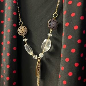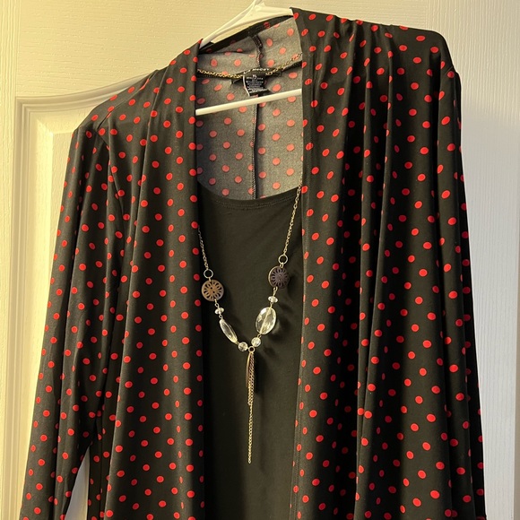 It’s a Liz McCoy tops in polka dot (red and black). Size XL. It’s comes with a long chain Necklace.