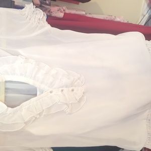 it is a size medium dress/formal/buisness casual white it has ruffles and a collared brand Maybe