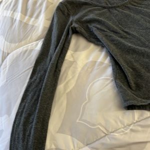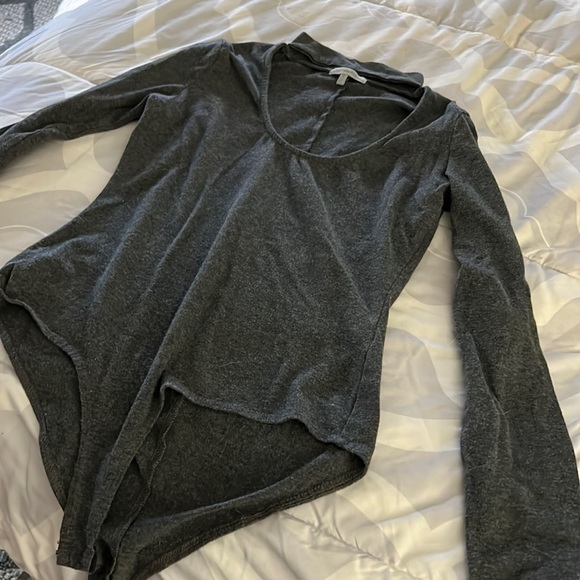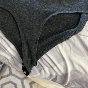 Very comfortable bodysuit with scoop neck and choker collar long sleeve. Measures 26 inches in length. Excellent condition.