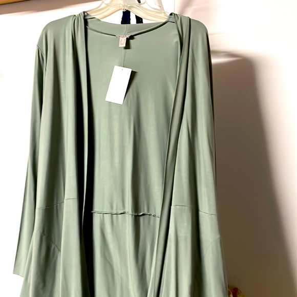 Women long sleeve open cardigan top. Side pockets and shear nylon bottom. Side pockets and bottom side slits.