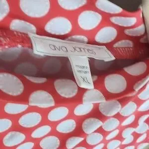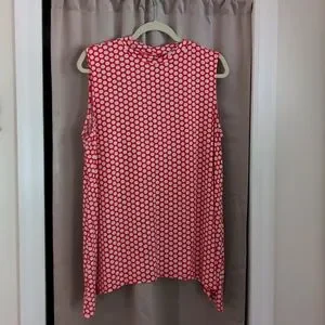Polka Dot ~ White/Bright Orange Sleeveless, low mock neck with 2 buttons🙂