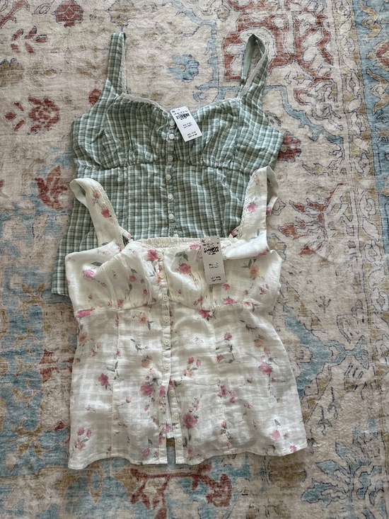 Hollister tank tops- floral and green plaid- M with tags