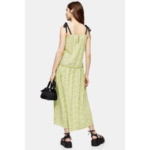 Topship Lime Floral Tie Shoulder Midi Dress