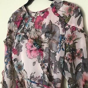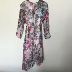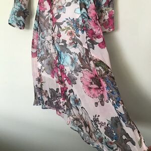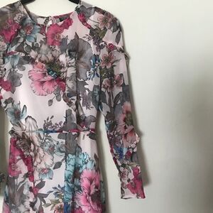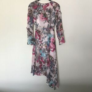 Topshop 4 ruffle detail floral print asymmetric hem dress