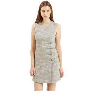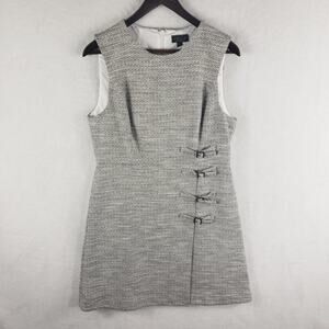 Topshop A-Line Sleeveless Dress Women 10 Tweed Buckle in Cream, Black, Grey EUC