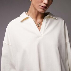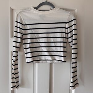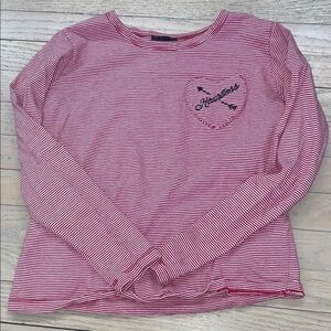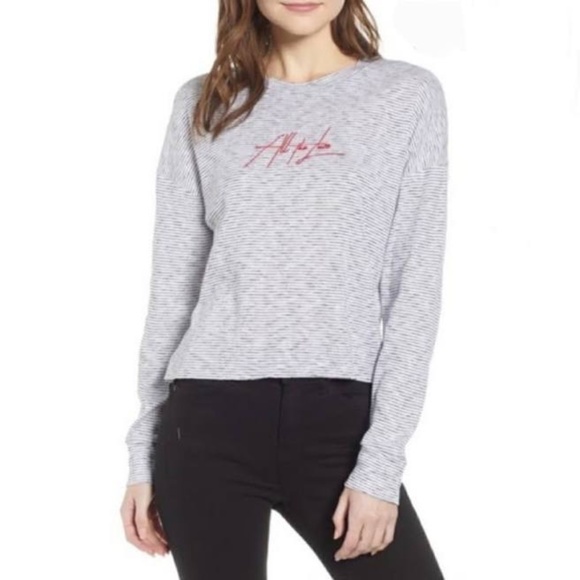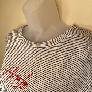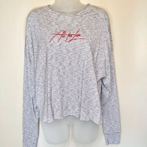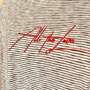 Topshop Embroidered "All The Love" Spell-out Horizontal Breton Stripes Crewneck High Low Crop Boxy Fit Pullover Oversized Vintage 90's Inspo Anniversary Valentines Preppy Coastal Retro Vibes Casual Long Sleeve Popover Shirt