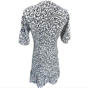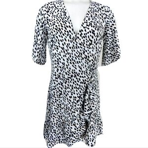 Item: Women's White Leopard Cheetah Ruffled Mini Wrap Dress