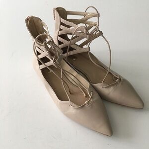 Topshop Ankle Strap Lace Up Point Ballet Flight Ghillie Flats.