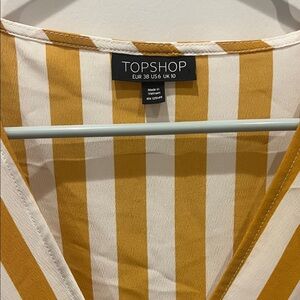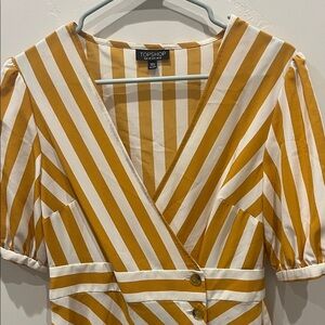 Topshop Asymmetrical mustard yellow and White Striped Dress