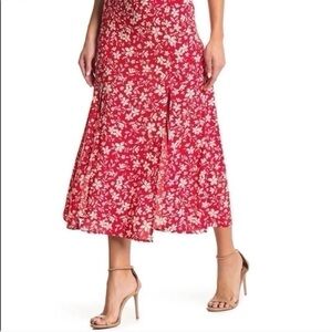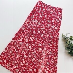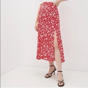 Topshop Austin Floral Front Slit Skirt In Red