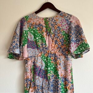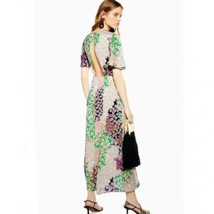 Topshop Austin Floral Print Multicolored Angle Sleeve Open Back Dress Size 4